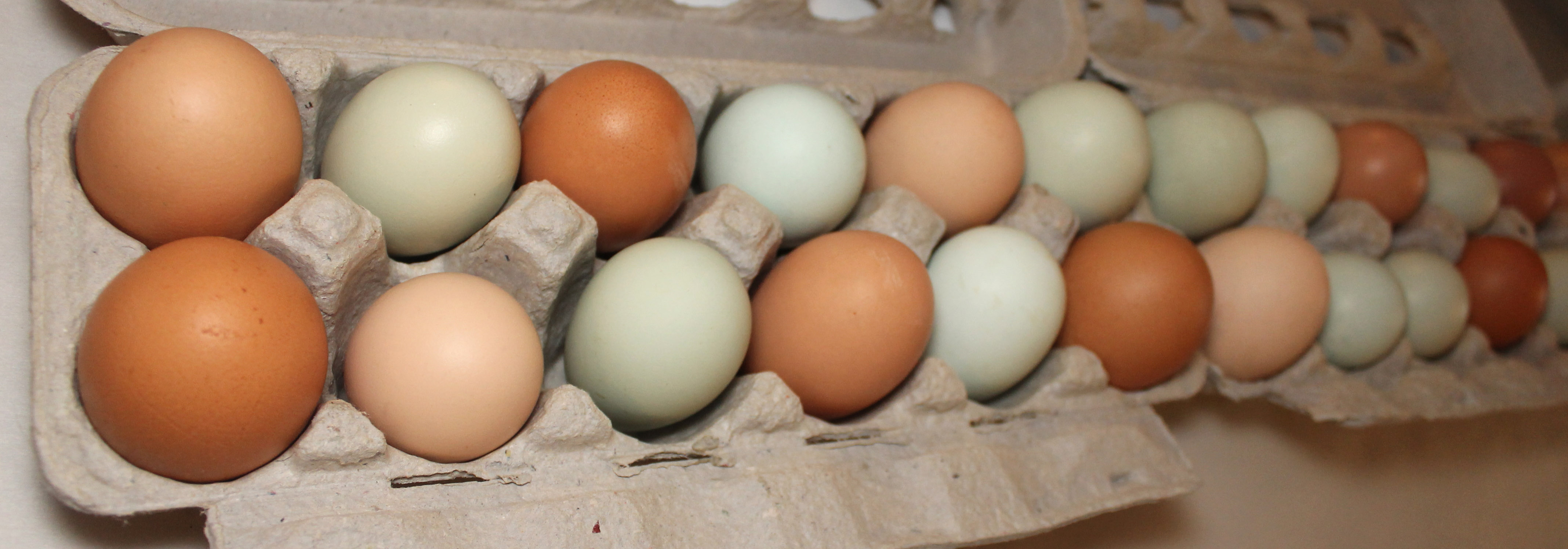 Our happy hens lay eggs that taste a whole lot better than anything you’re likely to find at the grocery store. Their varied diet and vigorous exercise leads them to lay more nutrient-dense eggs that have bright-orange yolks that herald a true free-range lifestyle.